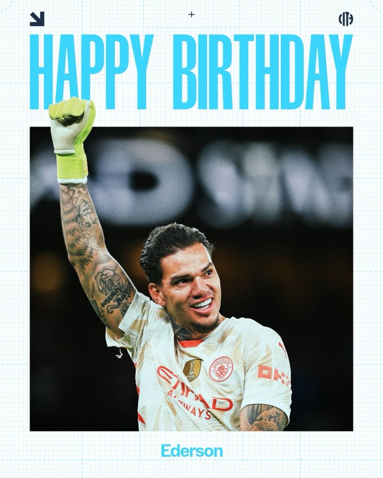 8月17日讯 今天是曼城门将埃德森的32岁生日,曼城官方为他送上祝福。
